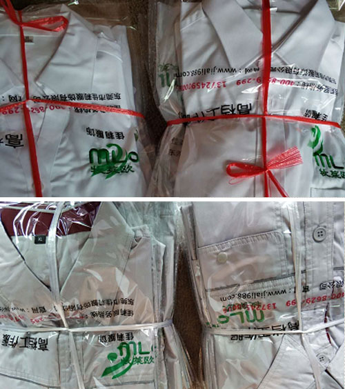 最后就是確定LOGO事宜,牧萊歐LOGO前面是采用刺繡工藝,考慮夏天衣服穿著舒適度的問題,后面就用了絲印工藝。經過一周時間的制作,佳莉為牧萊歐全屋定制送去了新的夏季工作服,看到員工們穿著合身的工作服,精氣神十足,企業形象明顯提升!