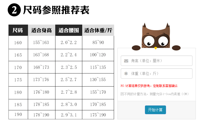 155(S)、165(M)、170(L)、175(XL)、180(XXL)、185(XXL)