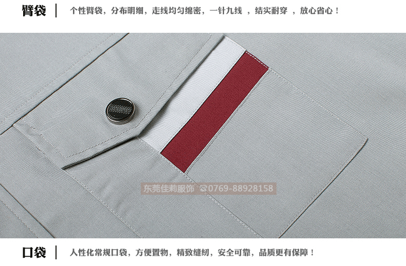 高品質全新形象,經典設計,立體裁剪,時尚翻領,質感有型。走線細致,優質暗扣,實用性強。胸前口袋撞色拼接,雙明線縫制既時尚又耐用,即使在下班之余也可以穿。